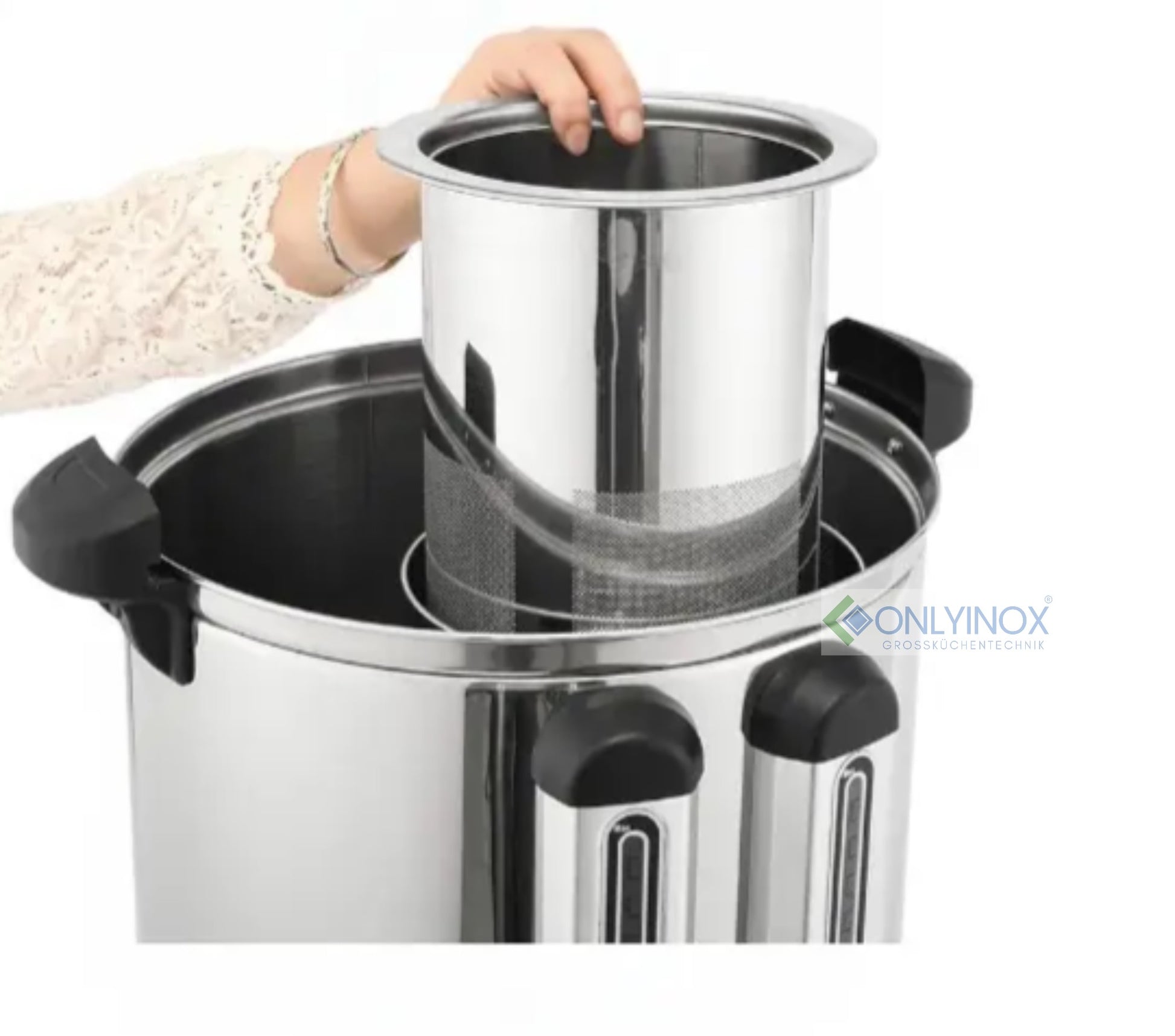 - Zusätzliche Sicherheit durch verdrehten Verschluss und hitzebeständige Griffe